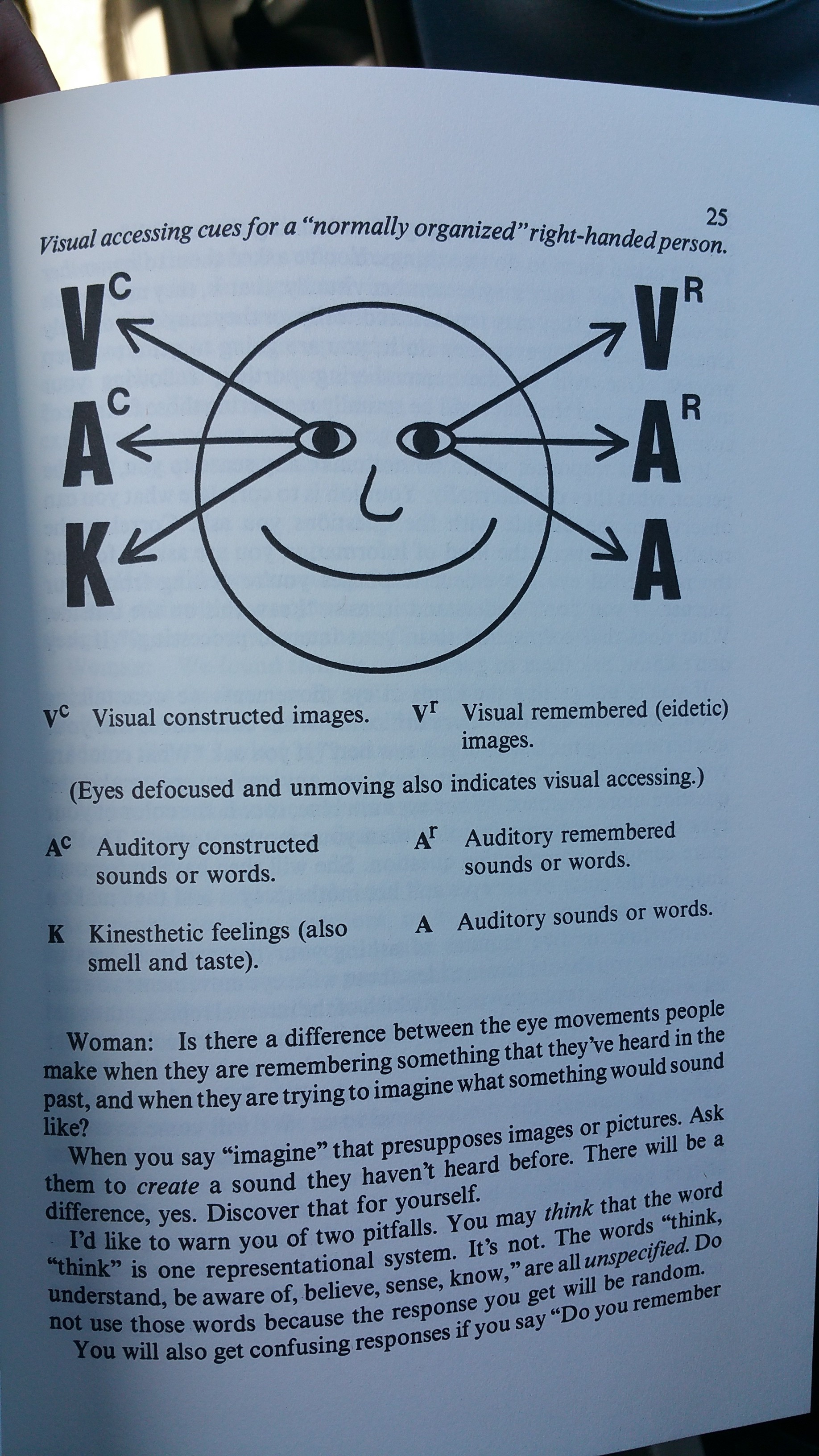 It’s a guide of how our eyes move based on how we access information. I figure if I can manage to understand this in people, I’ll be able to explain myself better.